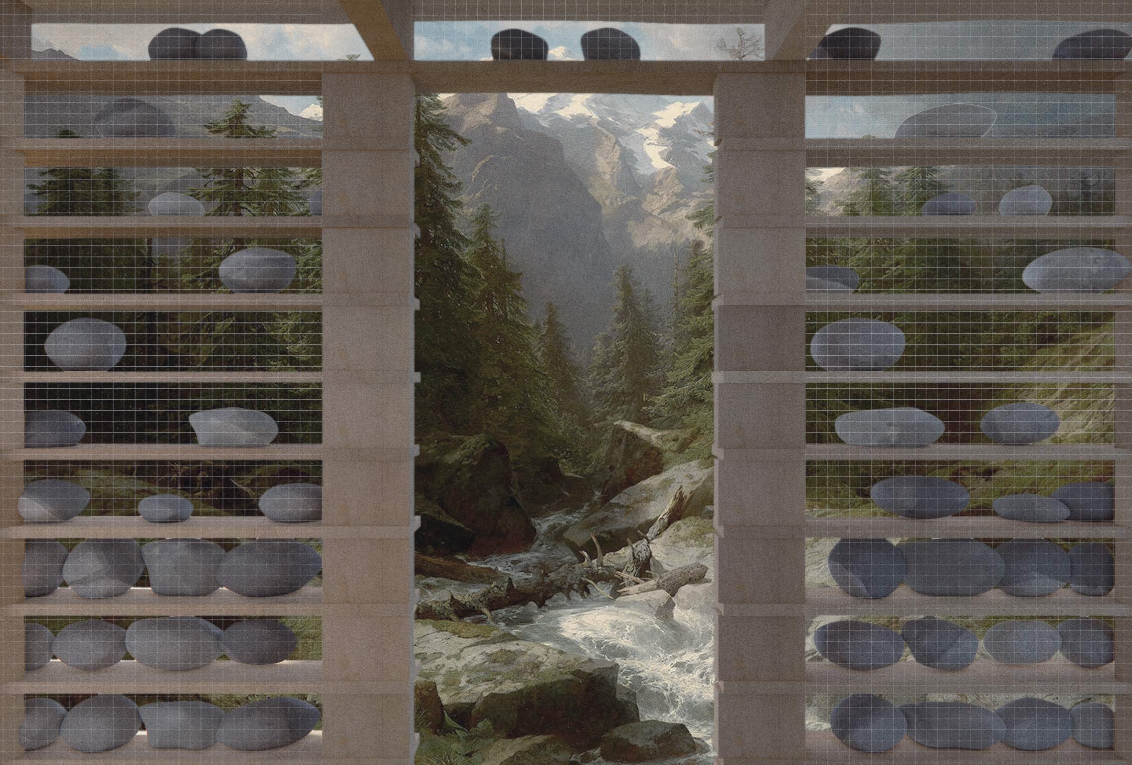 Festival des cabanes des sources du Lac d'Annecy, site de la Combe d'Ire, Chevaline (74), France, 2025. Proposition non retenue. Projet en collaboration avec Pierre Bertin et Thomas Julo.
